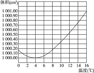 kg的纯水在不同温度时所占的体积曲线图.由图可知,在______℃时,1
