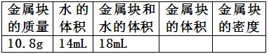 例2:晓丽买了一件工艺品,但不知究竟是什么金属制成的.于是她用天平和量筒对该工艺品的密度进行了测量,得到以下表格中的一些数据.请将表格填完整.