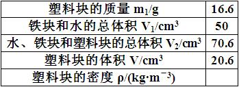 (3)把铁块从量筒中取出,把塑料块和铁块捆在一起,再放入量筒中,读出这时水、铁块和塑料块的总体积V2,即可算得塑料块的体积V.