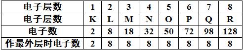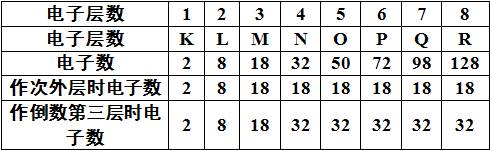 (1)各层最多能容纳的电子数是2n2(n表示电子层序数)。